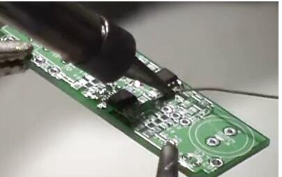 7. 烙鐵頭的位置應于焊盤與材料圓孔中心間焊接
