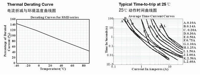 SMD1812系列貼片保險絲:貼片型、無鉛、卷盤式包裝自恢復保險絲,應用于高密度線路板,它的工作電流范圍是0.1-3.5A,工作電壓:6-60V,工作溫度:-40~85℃。